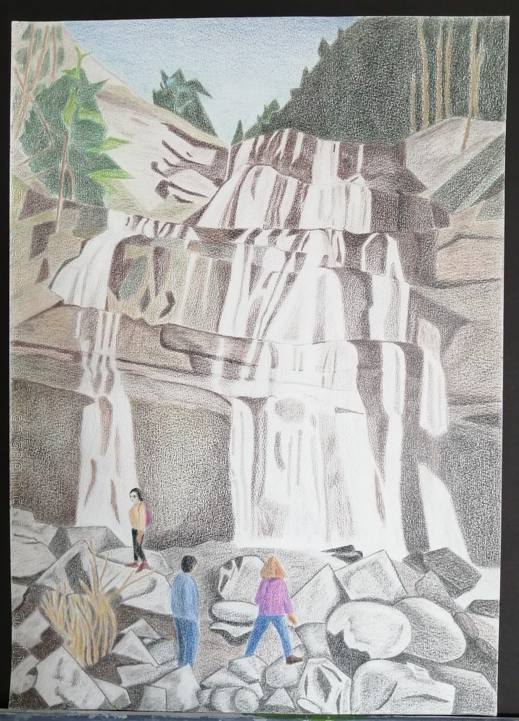 Crayons de couleurs sur papier, format A3. Réalisé à l'atelier d'art plastique en 2022